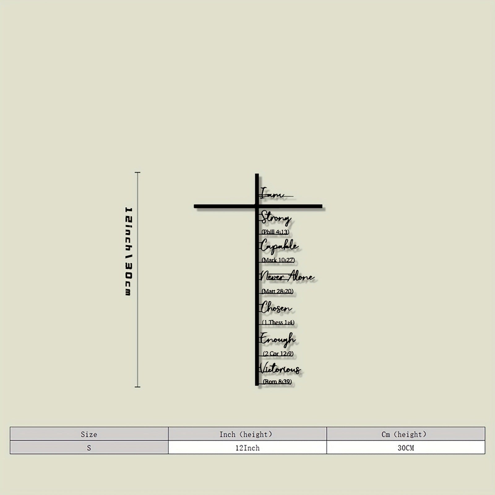 הביאו מסר של כוח, חסד ותקווה לביתכם עם אמנות קיר ממתכת בהשראת כתובים זו. מעוצבת בסילואט של צלב מודרני, היא משמשת כתזכורת יומית לאמונה ולחוסן, תוך הוספת נופך רוחני מעודן לדקורציה שלכם.