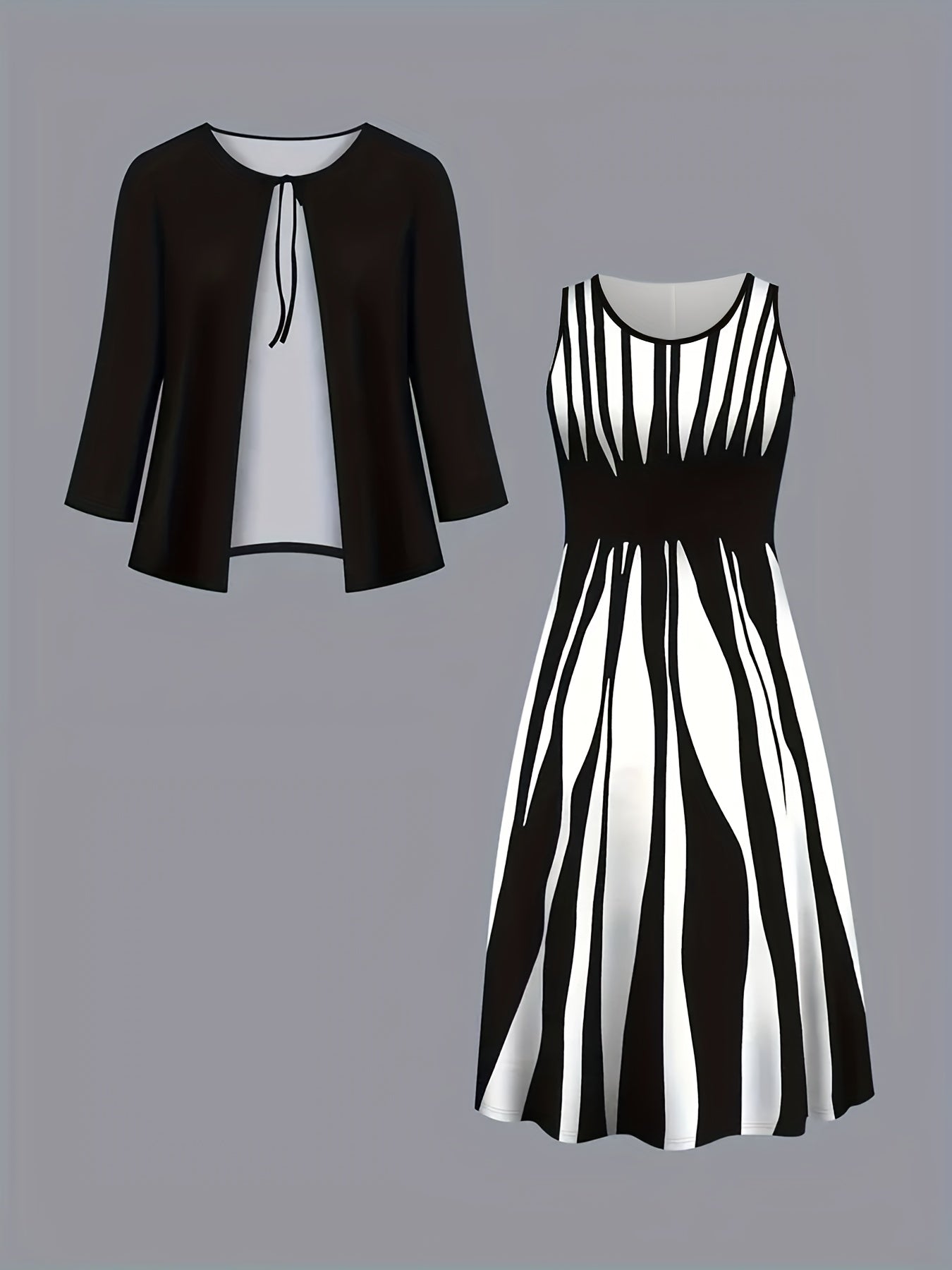 שמלת המידי הקזואלית הזו מציעה סילואט זורם בשילוב שכבת חיצונית מתואמת למראה מעודן אך קליל. היא תוכננה לזוז באופן טבעי עם הצעדים שלך, ומציעה סגנון מאוזן שעובד מתוכניות יומיות ועד מפגשים נינוחים.